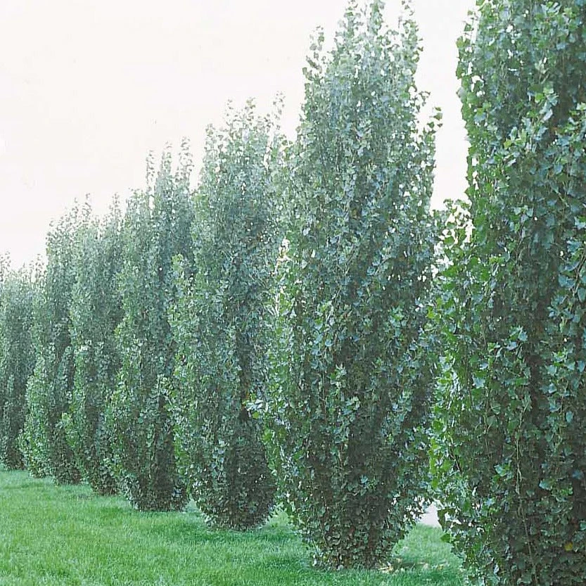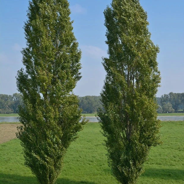 Le peuplier pyramidal Populus nigra ‘Italica’ est un arbre Ă croissance rapide (plus de 80 cm par an) qui est particulièrement adaptĂ© pour la confection de haies. Il possède des branches verticales qui poussent près du tronc, et des feuilles qui bougent au moindre souffle d’air. Cet arbre est Ă©galement connu sous le nom de peuplier d’Italie, et s’avère ĂŞtre très prĂ©sent sur le territoire français. Il est souvent utilisĂ© en bordure de routes, de canaux ou des berges de cours d’eau, grâce Ă sa silhouette Ă©lancĂ©e.