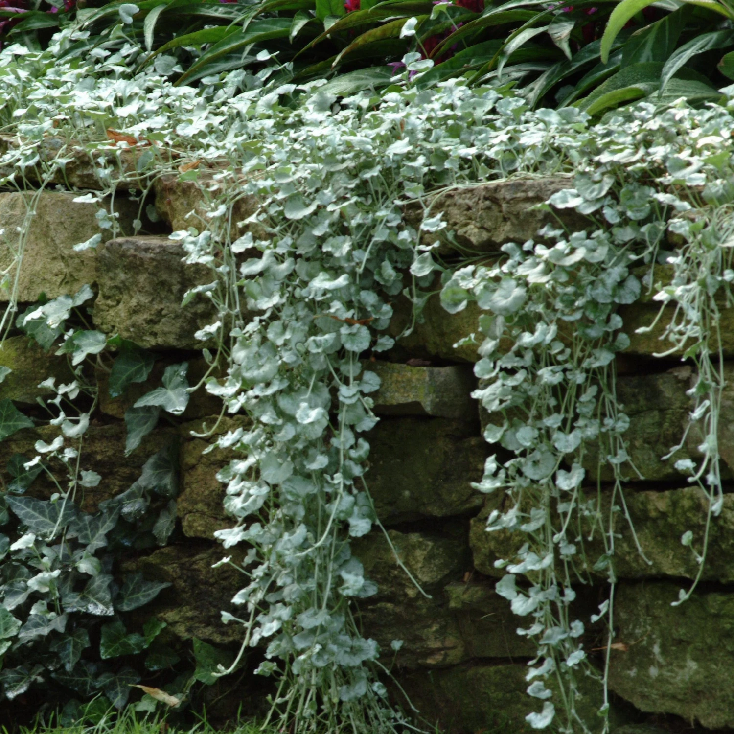 Le Dichondra argentea Silver Falls est un couvre-sol à croissance lente et vigoureuse. Il s’adapte bien à une ombre légère à moyenne et nécessite un arrosage fréquent pour une croissance optimale. Il gagne à être fertilisé pendant les mois d’été avec un engrais équilibré, car cela aide à promouvoir un feuillage luxuriant. Bien qu’elle ait tendance à être courte et à pousser lentement, la plante peut atteindre une hauteur de 10 cm et se répand rapidement dans l’espace qui lui est donné. Pour contenir sa taille, il faut la tailler ou la couper régulièrement dès que le nouveau feuillage apparaît. Si elle est correctement entretenue, cette plante est résistante aux maladies, mais un arrosage incorrect peut entraîner des taches sur les feuilles ou la pourriture des racines ; gardez-la donc hydratée !