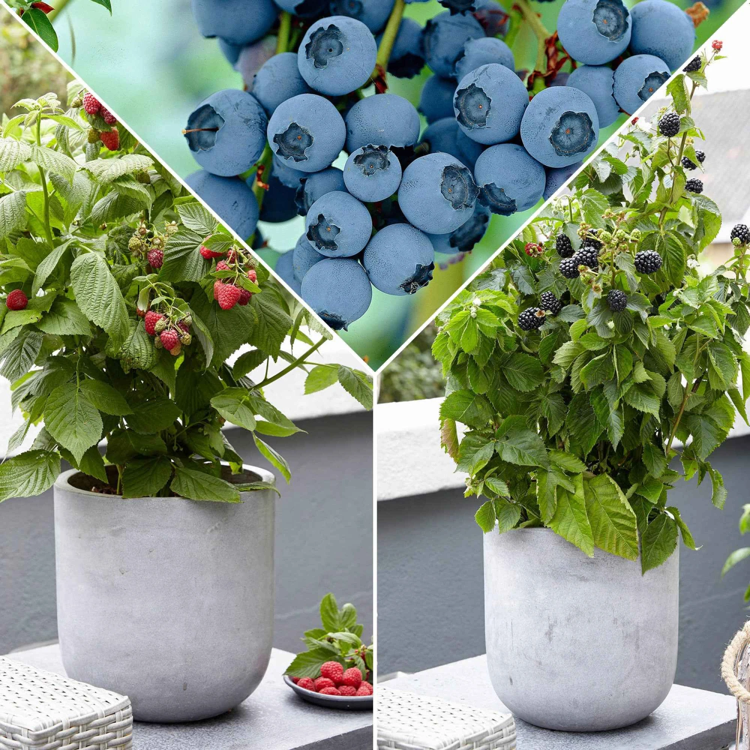 Une superbe collection de trois arbustes fruitiers nains