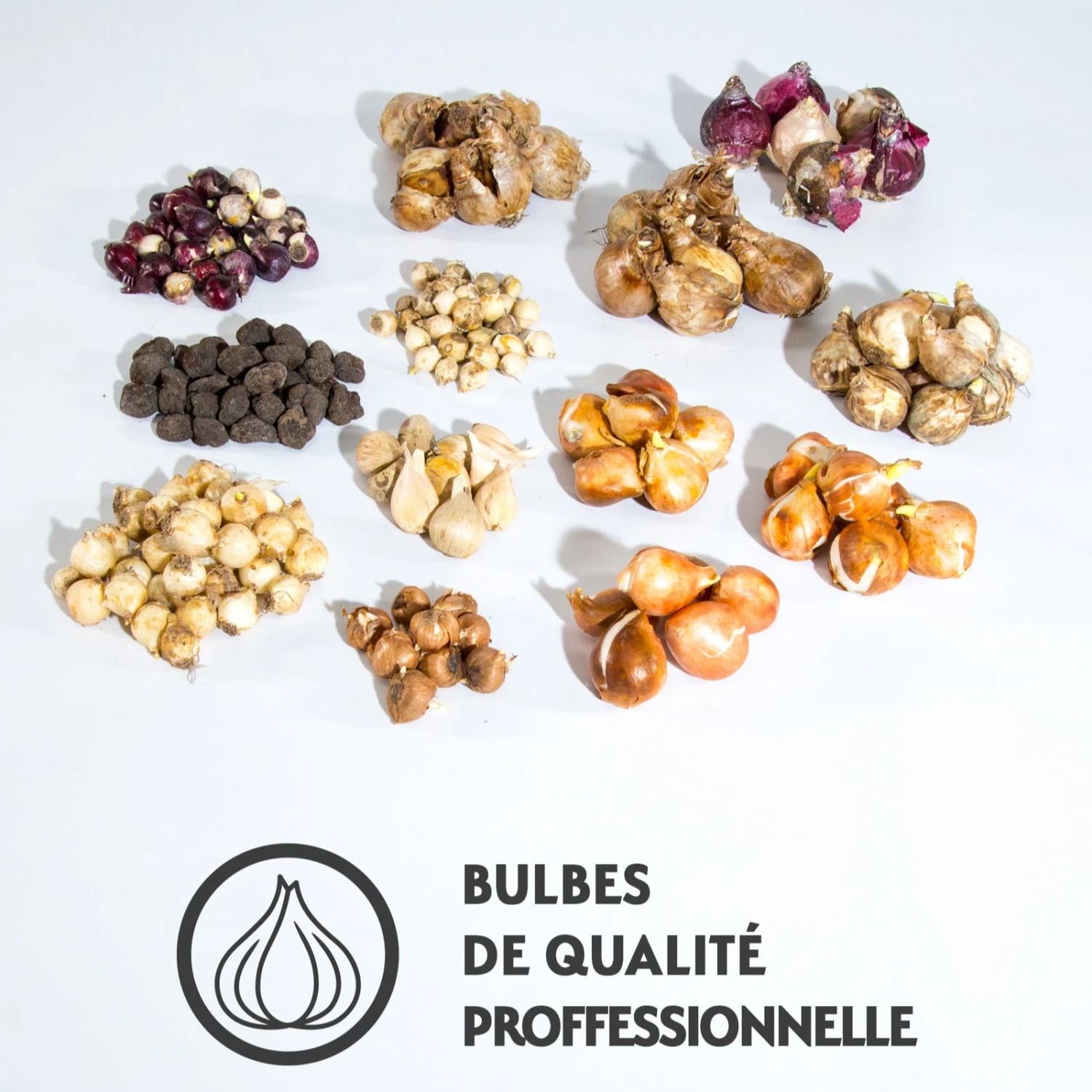 Pour un massif fleuri bien durant tout le printemps, choisissez sans hésiter cette superbe collection de bulbes assortis. Composée de 200 bulbes répartis dans 13 variétés spécialement choisies, elle vous offrira une floraison échelonnée de février à mai, qui vous charmera par un festival de couleurs et de parfums.