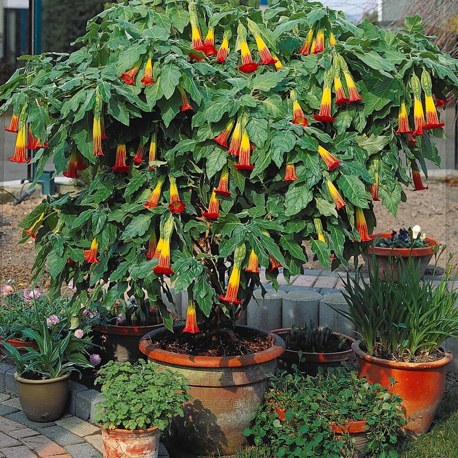 Ces arbustes vous offriront durant tout l’été des grandes clochettes bien colorées de 20 à 30 cm de longueur ! Un magnifique spectacle en perspective sur la terrasse. Des arrosages réguliers et du soleil leur suffiront. Les fleurs sont très odorantes, surtout en fin de journée. Comprend 1 rouge et or + 1 jaune + 1 Exotic Pink.
