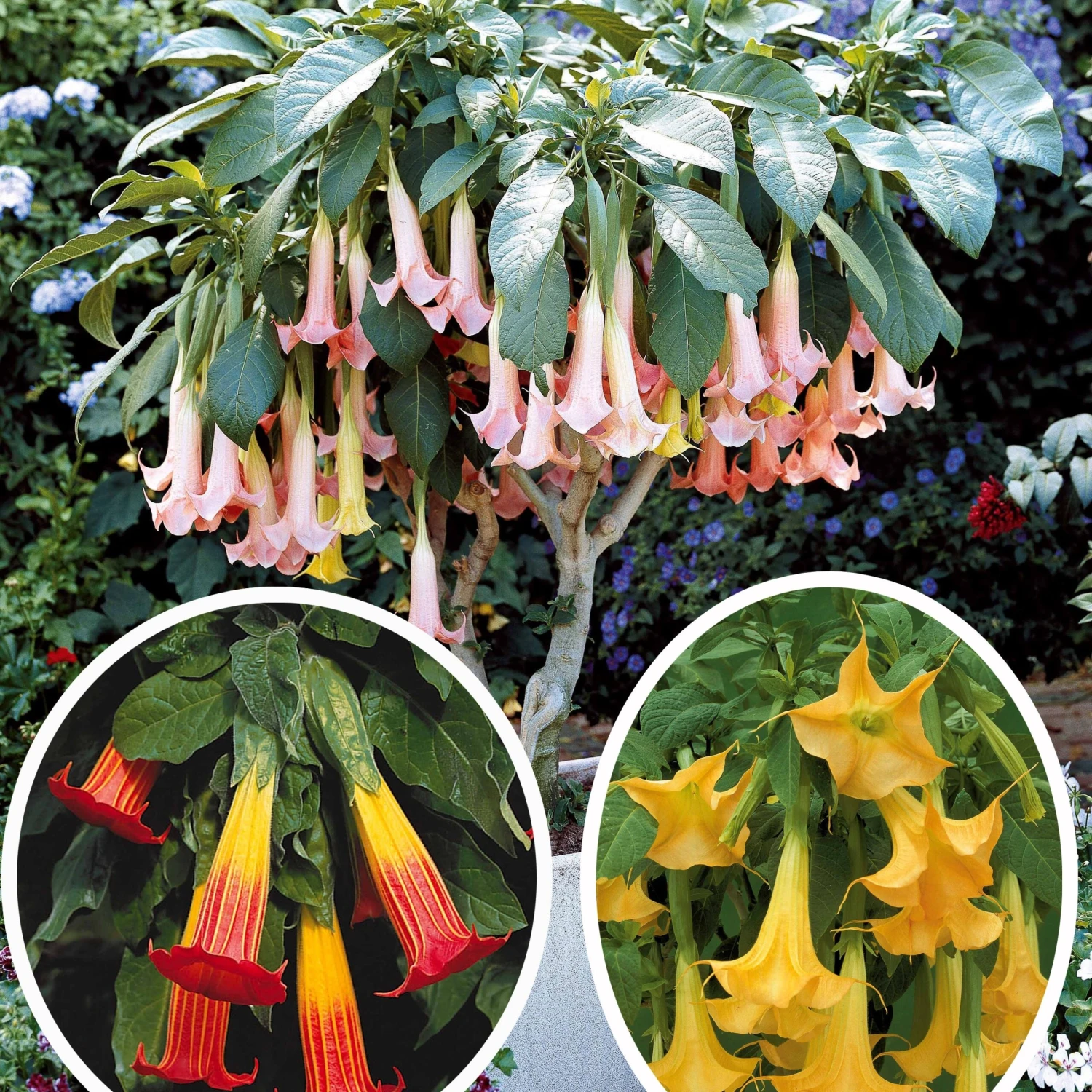Collection De 3 Brugmansias : Rouge Et Or, Jaune, Rose