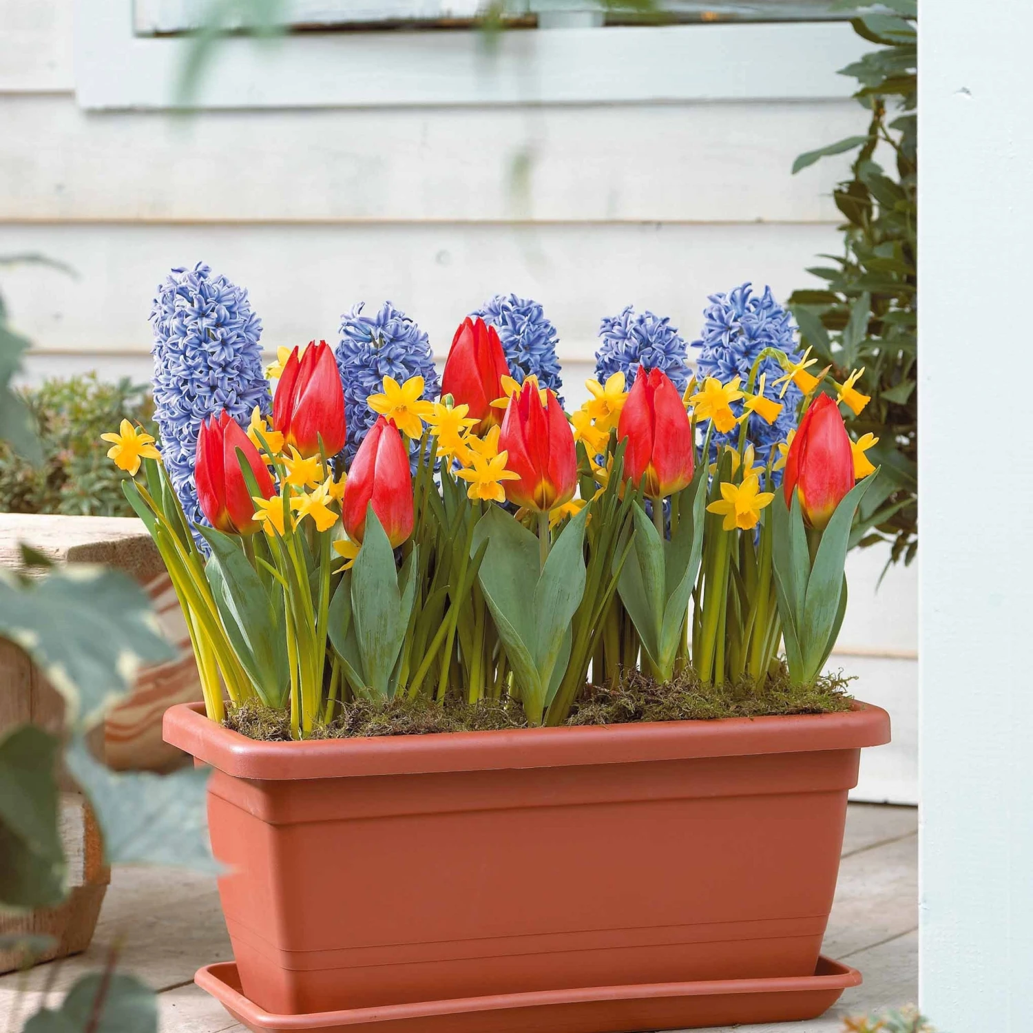 Si vous souhaitez créer un superbe décor dans une jardinière à vos fenêtres, Willemse vous propose cet ensemble de bulbes de printemps colorés et florifères. Composé de jacinthes bleues et parfumées, de mini-narcisses jaunes et de tulipes naines rouges, il vous offrira plusieurs semaines de fleurs au cours du printemps, dès l’arrivée des premiers beaux jours.